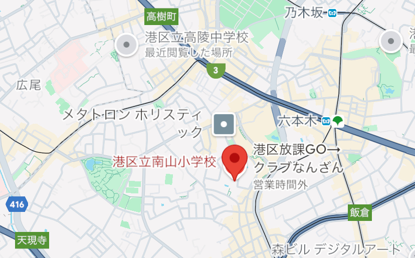 港区立笄小学校・港区立本村小学校・港区立白金の丘学園白金の丘小学校・港区立南山小学校・港区立青南小学校・港区立赤坂学園赤坂小学校・港区立芝浦小学校・港区立港南小学校・BRITISH SCHOOL IN TOKYO(神谷町)・TOKYO INTERNATIONAL SCHOOL(南麻布)・西町インターナショナルスクール(元麻布)・FHOENIX HOUSE INTERNATIONAL SCHOOL(千代田区番町)・KAIS ELEMENTARY SCHOOL(目黒区中根)